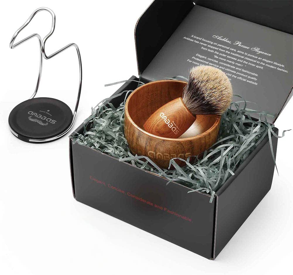 高級シェービングブラシ ひげブラシ ひげブラシ シェービングブラシセット 3点セット純粋なバッガーヘアシェービングブラシ ステンレス製の剃刀スタンド ステンレススチールシェービング髭剃り 泡立ち 洗顔ブラシ メンズ