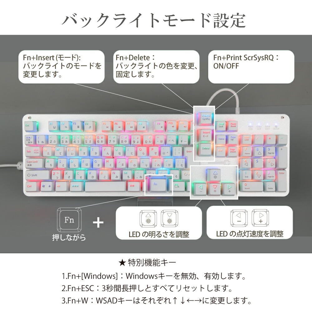 ゲーミングキーボード 白 茶軸 JIS配列 日本語配列 キーボード