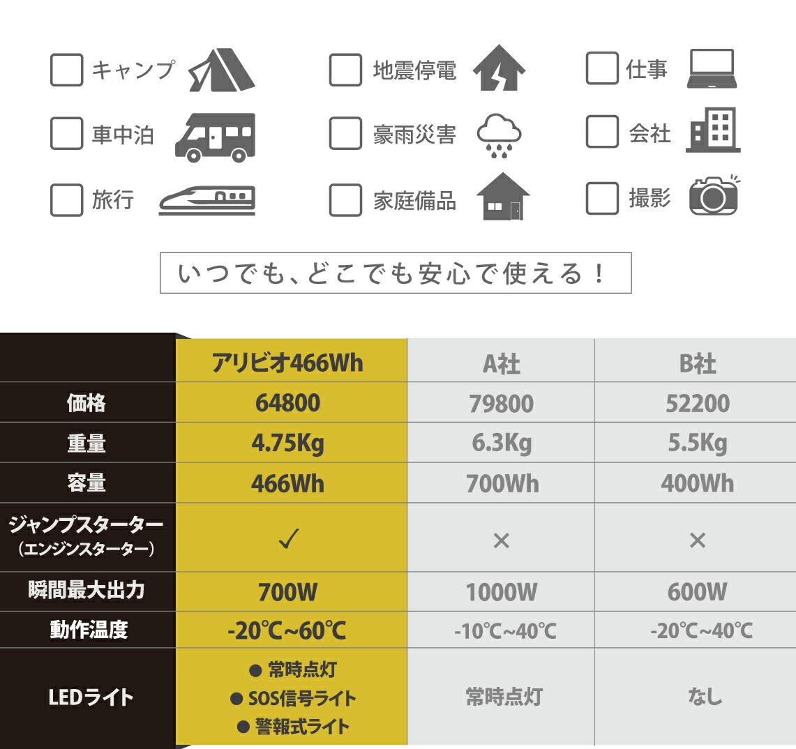 アリビオ466w ポータブル電源 大容量 バッテリー