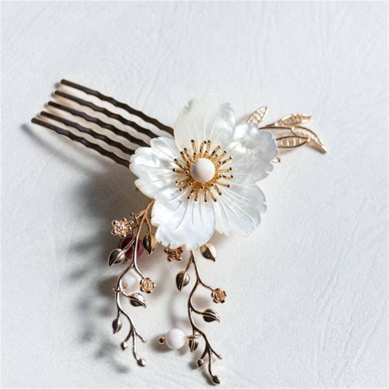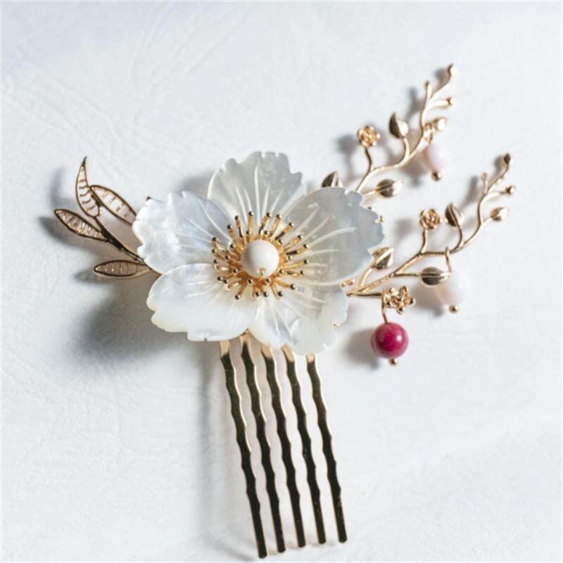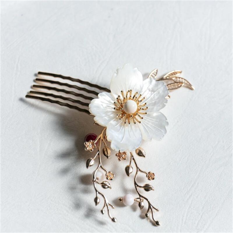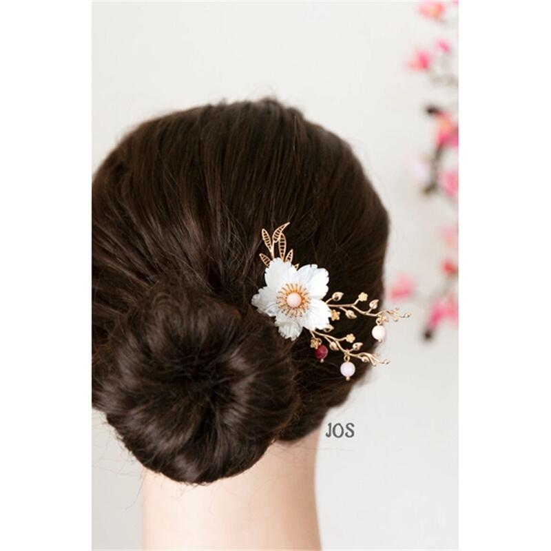 白蝶貝と高級貝パールのかんざし ヘアコーム ヘアアクセサリー 和装髪飾り