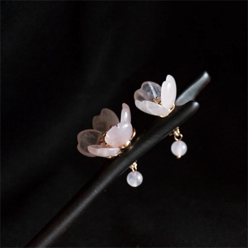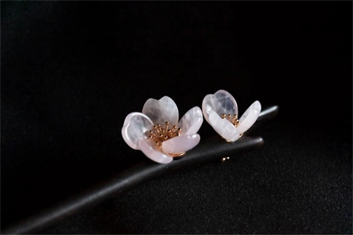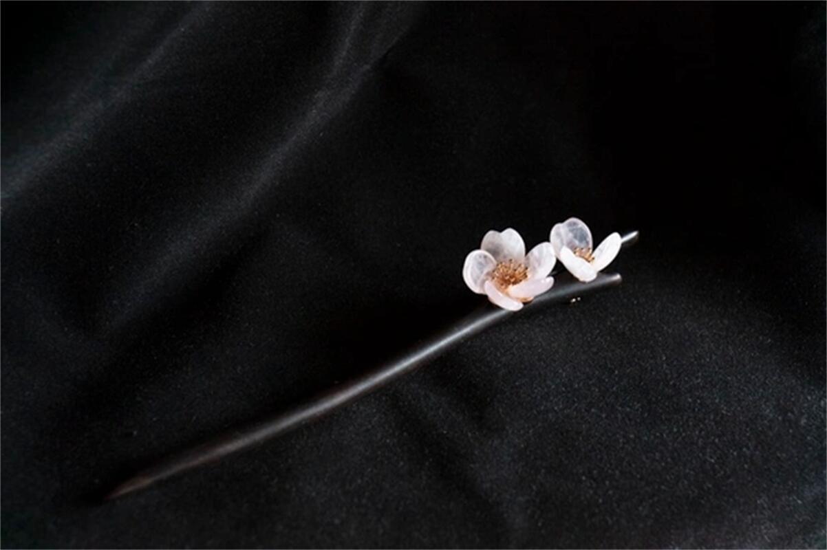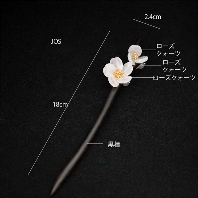 ローズクォーツの桜のかんざし 黒檀 天然石 木製 簪 和装髪飾り ヘアアクセサリー